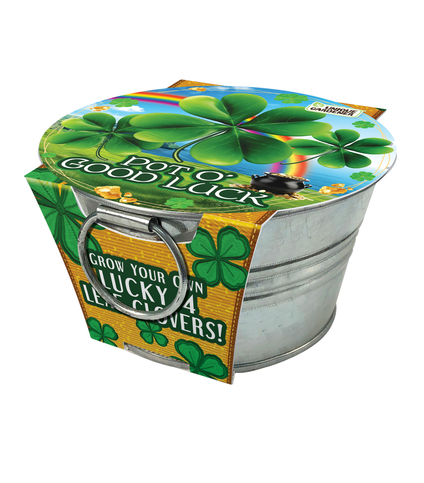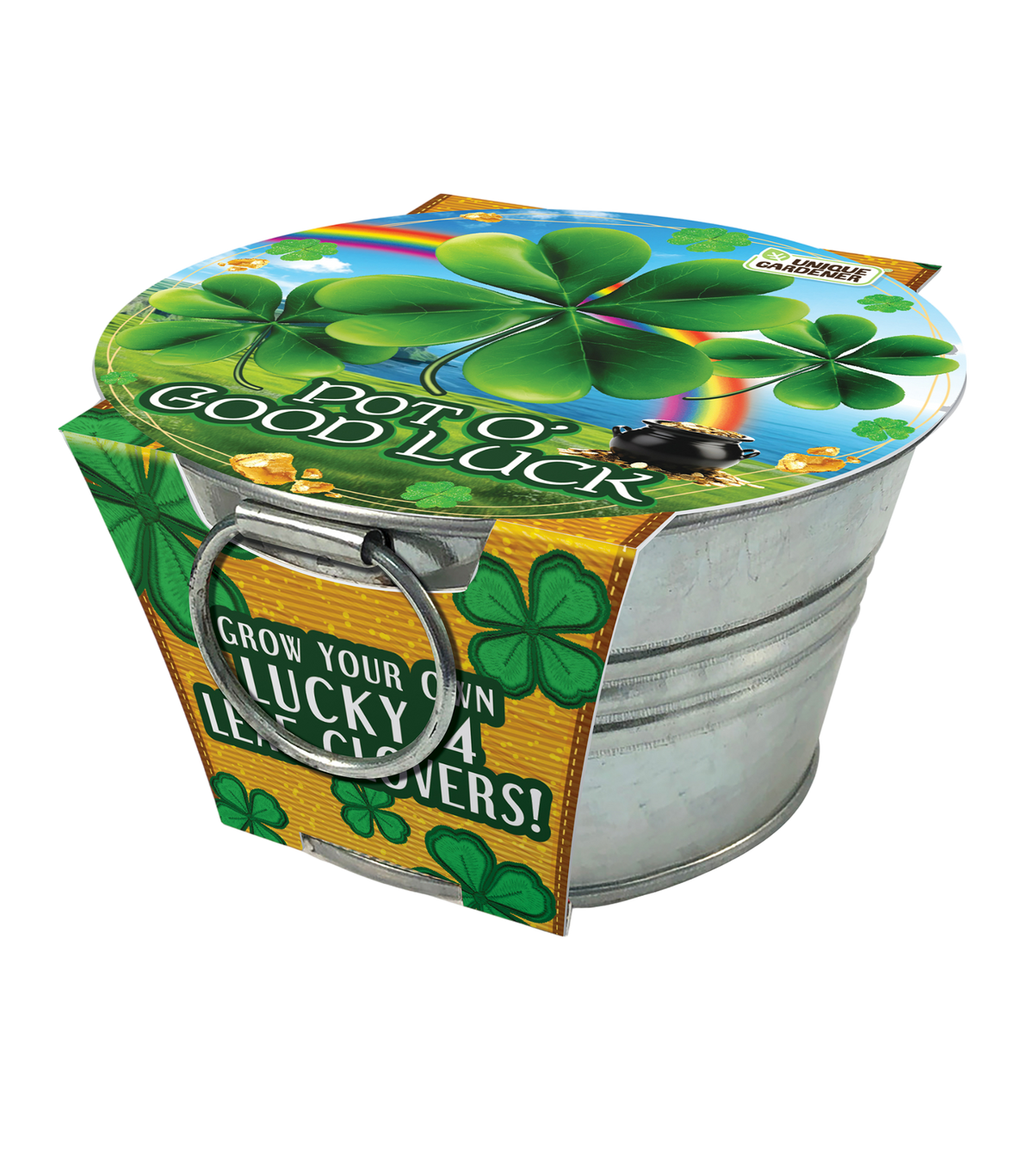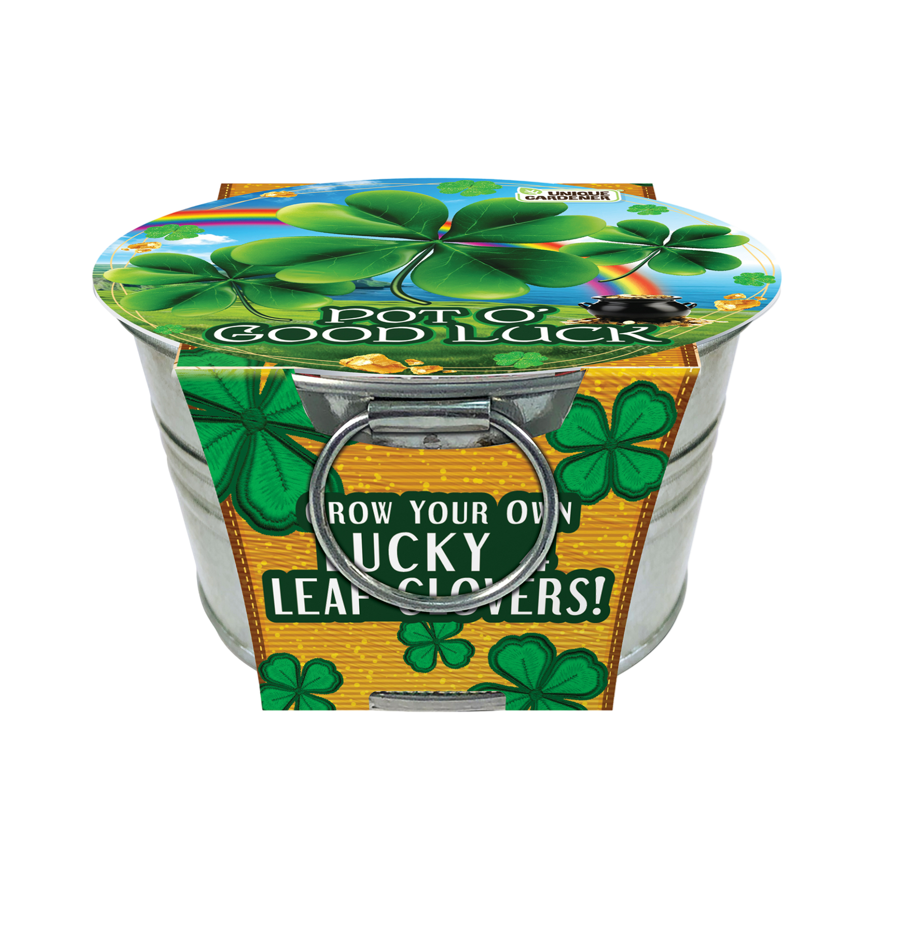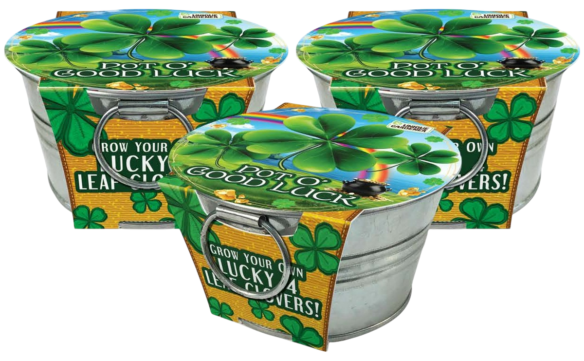 Discover the magic of luck with the Pot O' Good Luck - Grow Your Own Lucky 4 Leaf Clovers! Perfect for bringing a touch of good fortune into your life. Known for their rarity and charm, 4 Leaf Clovers are a symbol of good luck and prosperity. Easy to grow and maintain, they make a delightful addition to any indoor space. Whether you’re looking to boost your own luck or give a unique and special gift, the Pot O’ Good Luck is a fun and engaging way to invite luck into your life. This complete kit comes with a high-quality galvanized tin planter, a compressed peat puck, and a full color pack of seeds- just add water! Multipack of 3. Instructions included. Guaranteed to grow!