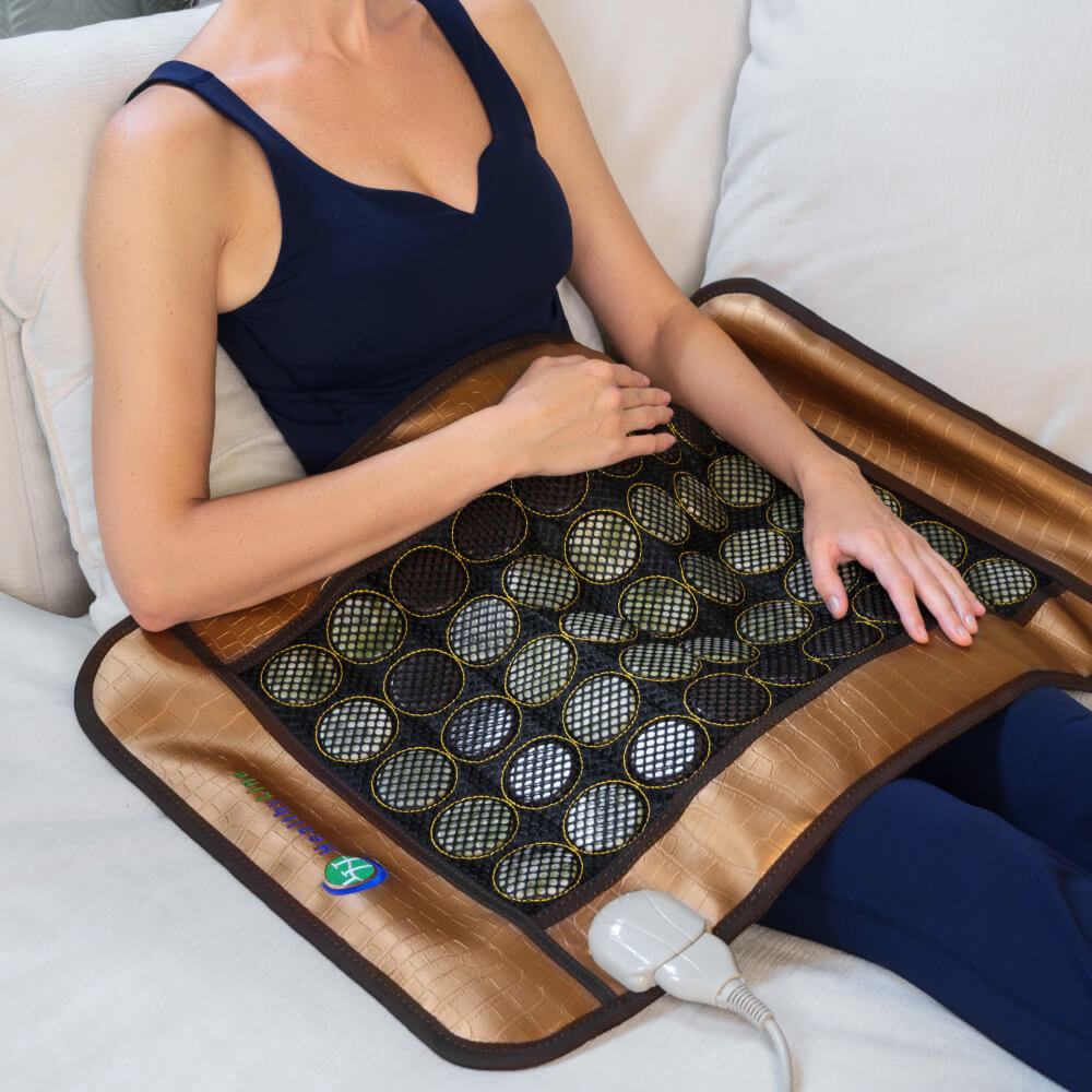 The Mesh Series is a Far Infrared Heating Mats that delivers natural Far Infrared Heat. Each has a mesh lining and flexible design that holds round pieces of jade and tourmaline. When heated, the natural gemstones emit far-infrared heat and negative ions to promote relaxation, circulation, and detoxification. The open-mesh design enhances heat penetration while keeping the mats lightweight and breathable, ensuring effective results.