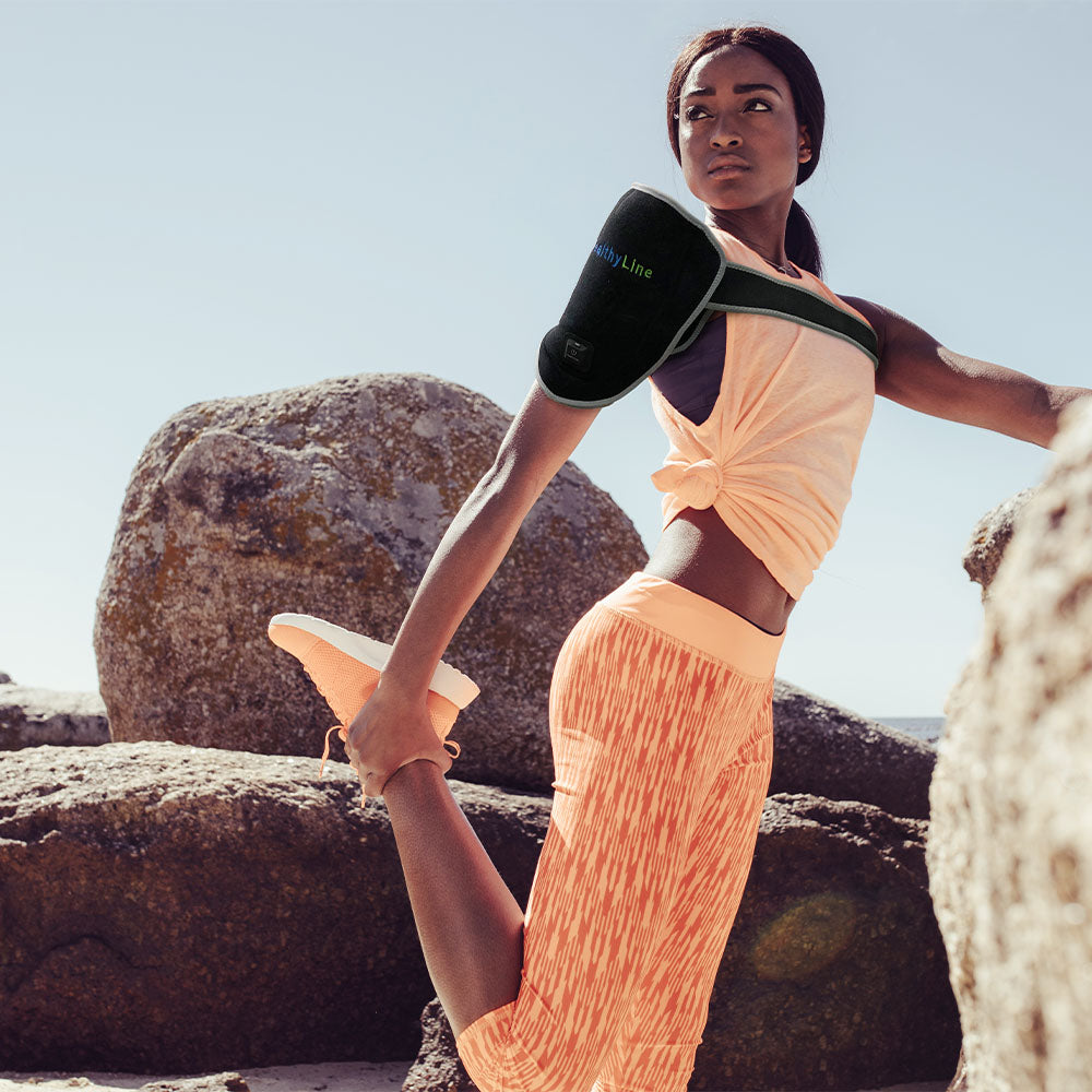 The heated shoulder wrap is a thoughtfully crafted far-infrared gemstone heating pad that incorporates an advanced carbon fiber heating system and natural gemstones to release deep penetrating far-infrared heat into a shoulder. It is designed to be portable bringing muscle relaxation and temporary relief of joint pain, tension, and stiffness on the go or in your home whenever you need. The product's maximum temperature is reached within approximately 25 minutes.