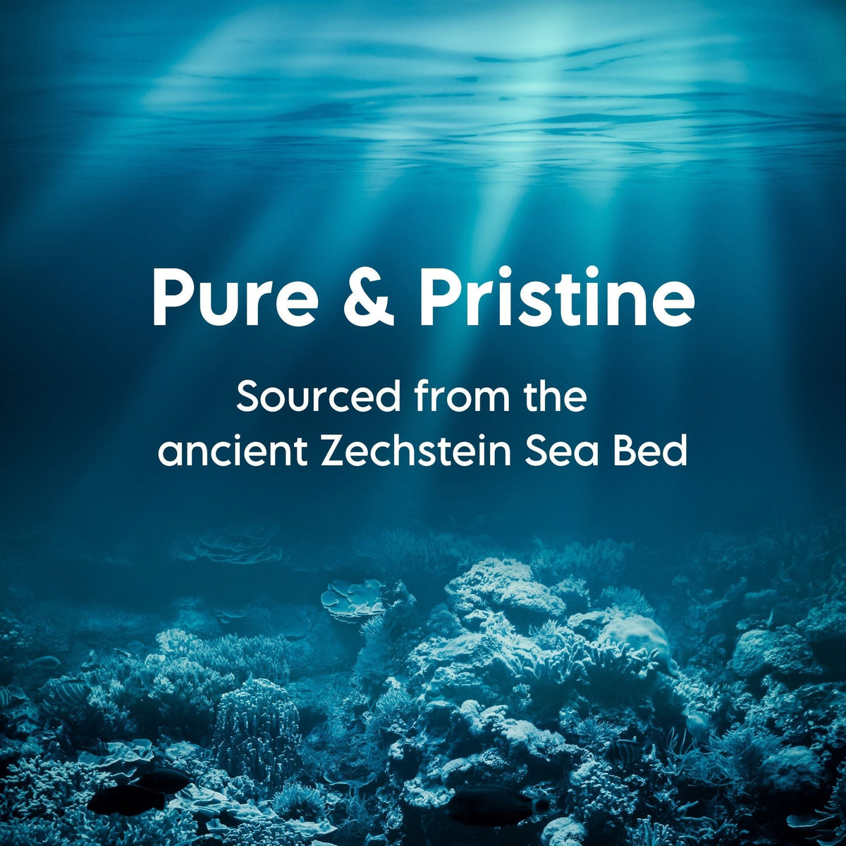 Our naturally-sourced magnesium chloride is only found 1500 meters underground in the ancient and pristine Zechstein Sea Bed. Formed 250 million years ago and protected from modern day pollution, it’s the purest source of magnesium chloride in the world. As it melts into a warm bath, it helps to relieve tired muscles, while easing tension in record time. Its delicate flakes drift into the steam like falling snow. Feel your worries melt away with it.